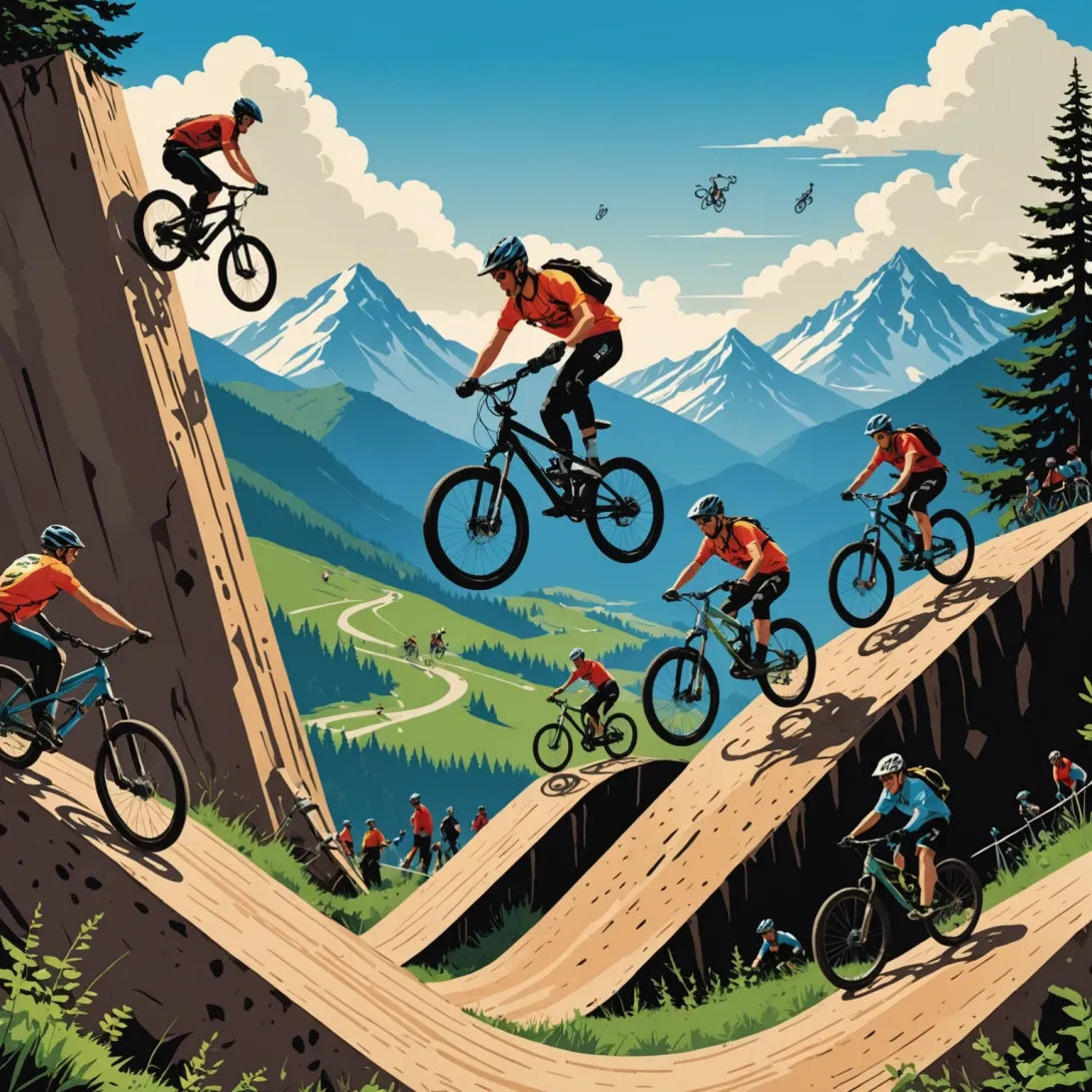 Горные экстремальные виды спорта включают в себя катание по пересеченной местности, преодоление естественных и искусственных препятствий, а также выполнение сложных трюков на специально оборудованных трассах. Это направление отличается высоким уровнем риска и требует от спортсмена не только силы и выносливости, но и хорошей техники езды.